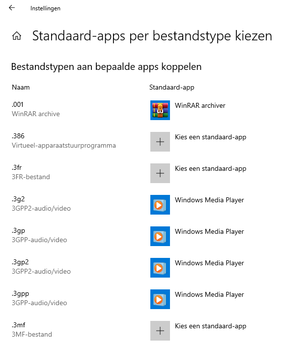 Je komt dan vervolgens in een lange lijst met alle bestandstypes (waar je dus ook mocht dat ooit spelen, ook andere bestandstypes kan veranderen)